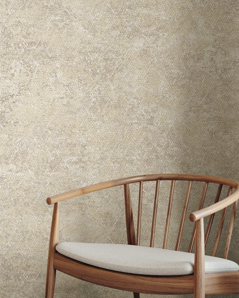 - Ophidian Cream: papel pintado con textura tipo piel de serpiente y reflejos dorados. Lujo sutil. (Ref. TE66123)