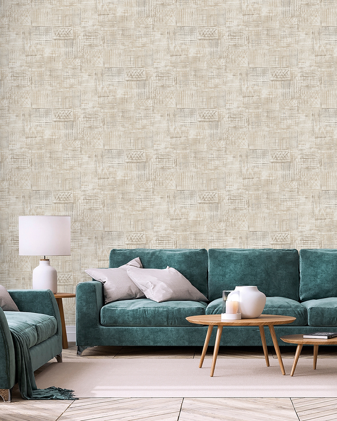 Cada uno de los diseños de la colección Jaipur está impregnado de un aire étnico refinado. Rayas punteadas, formas tribales y geometrías suavizadas conviven con texturas inspiradas en los antiguos telares. Son papeles pintados pensados para quienes desean ir más allá de la decoración convencional y vestir sus paredes con referencias culturales que transmiten autenticidad.