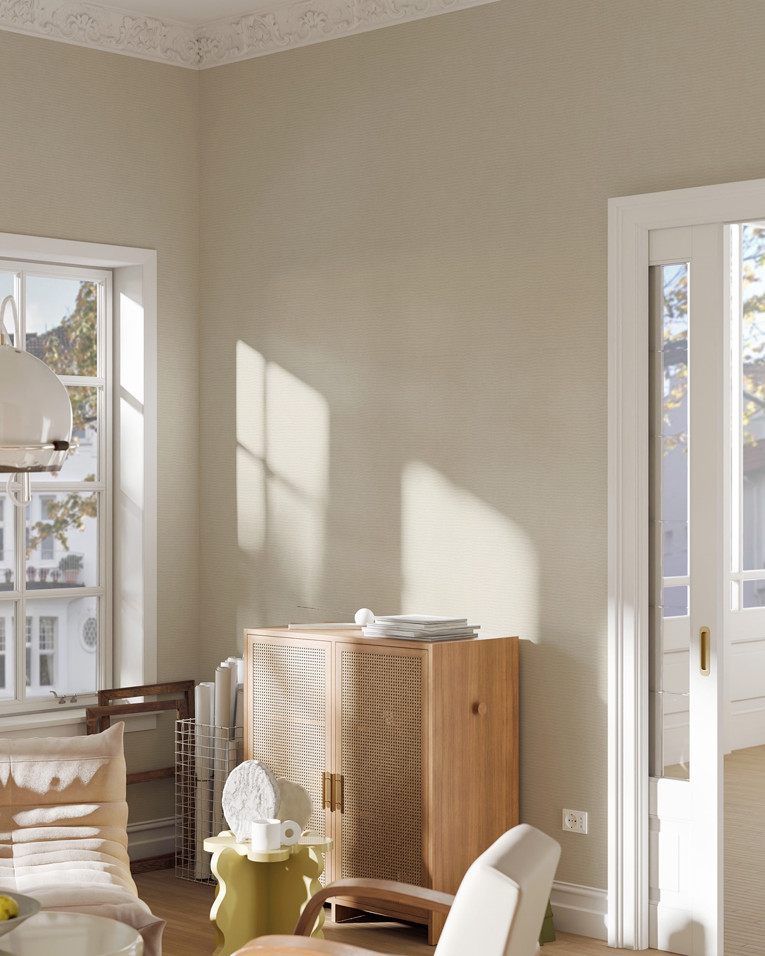 Doce colores cuidadosamente seleccionados, incluyendo neutros imprescindibles y versiones metalizadas en cobre, dorado y plateado. Sirven para equilibrar paredes protagonistas y mejorar la percepción del espacio sin perder calidez.